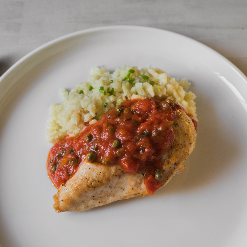 Chicken with Tomatoes and Capers with Mashed Cauliflower