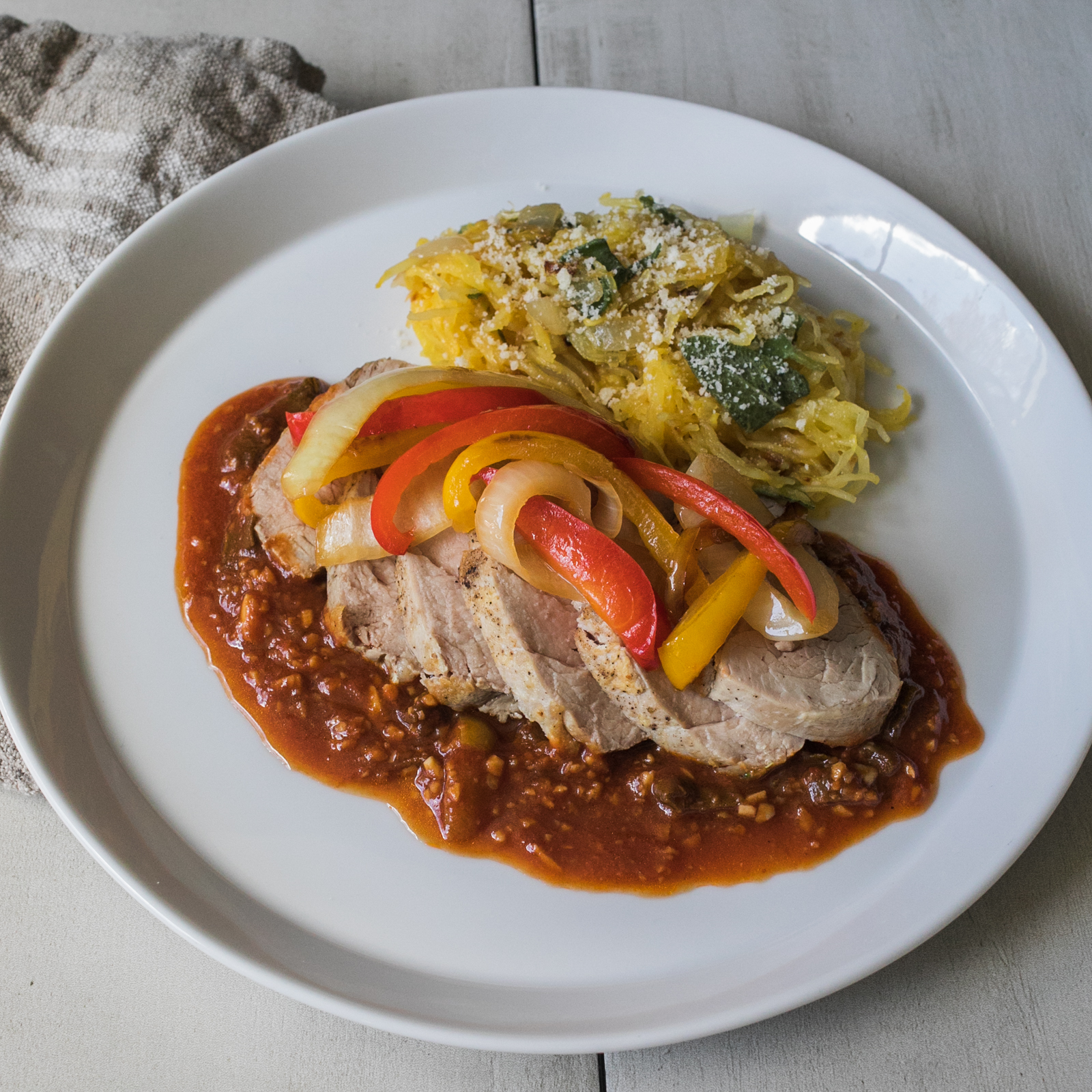 Pork with Bell Peppers and Pepperoncini with Lemon-Sage Spaghetti Squash