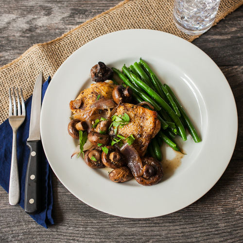 Roasted Chicken with Herbed Mushrooms with Sautéed Green Beans