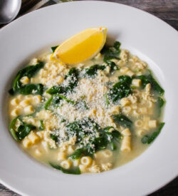 Chicken and Spinach Soup with Cannellini Beans and Pesto